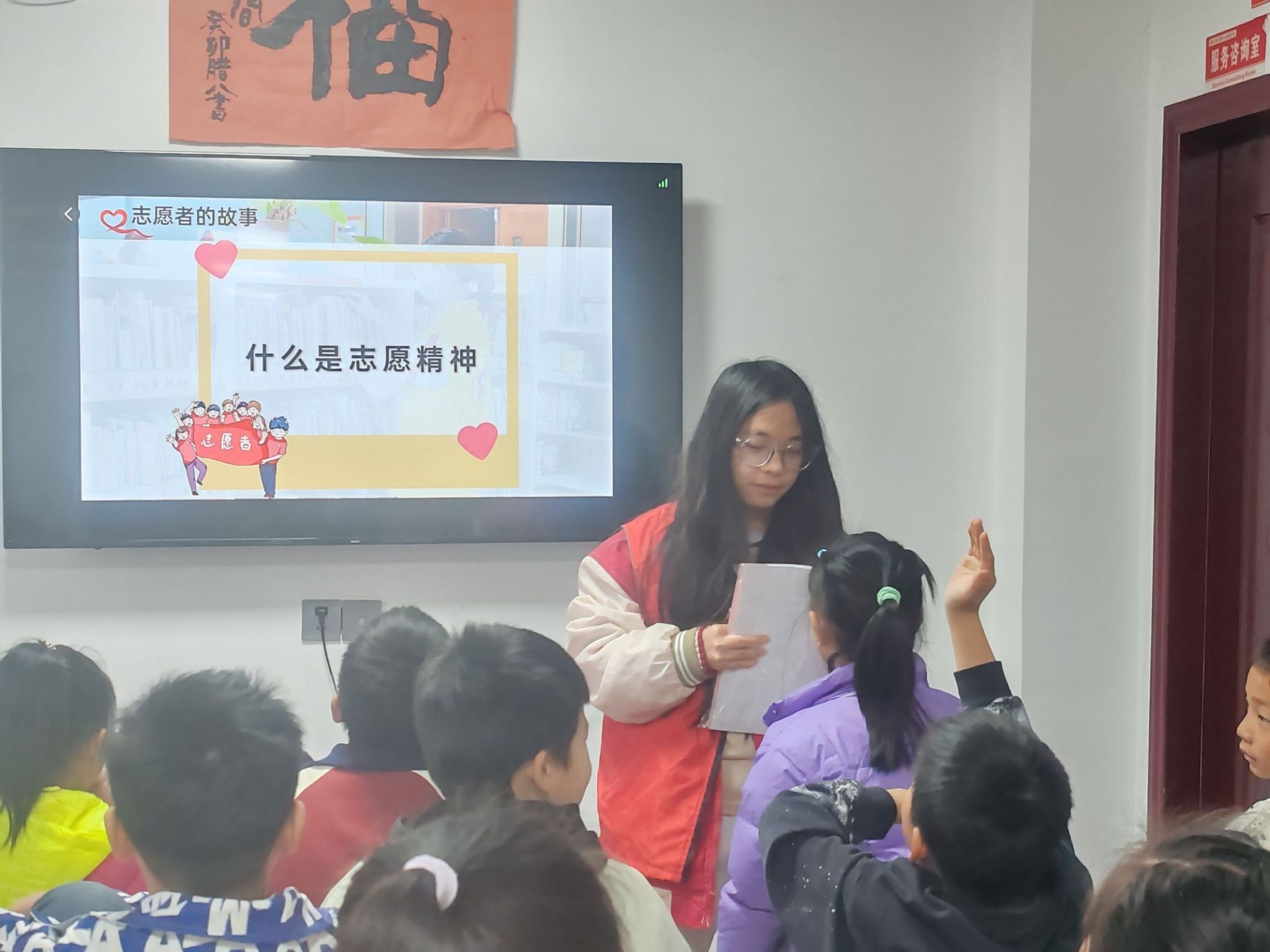 图二为小朋友们积极回答志愿者问题