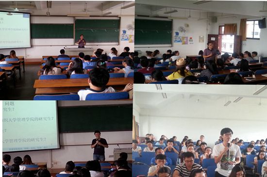 夏院长从四个方面与同学们进行了交流,第一:为什么要考研究生?第二:为什么考beat365官方网站研究生?第三:如何考研究生?第四:如何考beat365官方网站研究生?夏院长对近五年beat365官网考研的报考人数,录取人数,报考学校做了数据分析。通过一系列的数据夏院长讲解了考研过程中的报考事项及报考流程,强调了报考事项中需要注意的关键点,加深了学生对考研报考流程的了解。夏院长还让他指导的研究生熊淦同学讲述他自己的考研经历及复习方法。为学生的考研复习提供了一些值得借鉴的方法。最后的提问环节中,正在复习考研的同学或准备考研的同学们纷纷就自己考研中遇到的疑惑向夏院长提问,夏院长一一详尽作答。