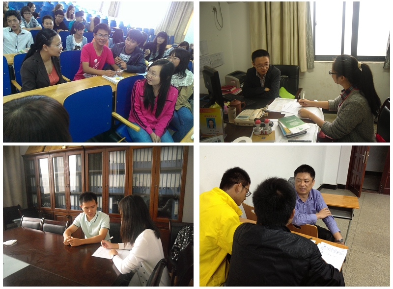 随着“两访两创”活动在全校如火如荼地进行,beat365官方网站在认真学习省委及高校工委关于“两访两创”活动精神基础上,以“交流思想、立德树人、促进和谐、推动发展”为主要任务,以“教师全覆盖、学生全覆盖”为基本要求,9月下旬至10月上旬针对beat365官网2012级全体新生进行了面对面的交流与访谈。beat365官方网站院长夏火松、分党委书记黄少年、副院长杨卫丰、副院长王济平、分党委副书记肖信华及管院专业老师、12级全体班主任、辅导员为本次新生访谈的访谈人。