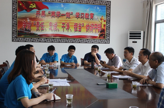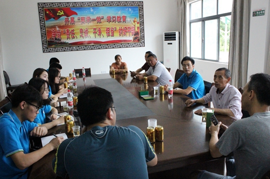 下午15点,校党委副书记刘在洲、校党委组织部部长陈朝阳、校办公室主任方国平、校工会主席杜新年等领导在与双泉村村委会干部进行会谈后对实践队表示了慰问。首先,实践队对双泉村的调研情况作了简要汇报,指出当地缺乏特色产品以及交通不便等问题。接着侯德林教授和汪诚诚老师分别对此次实地调研作了总结,并对村民及村干部表示感谢。最后,刘书记嘱咐实践队队员在实践过程中要注意三点:一、做贡献,利用专业知识和自己的资源推动当地的电商平台的构建及老百姓观念的转变;二、受教育,学习精准扶贫案例,锻炼自身做群众工作的能力;三、长才干,提升自己分析问题、解决问题以及调查研究等各方面的能力。