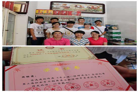 在民族工艺品有限公司——丽情绣坊土家绣门店内,我们看到了各式各样刺有精美图案的鞋子、质地柔软品质优良的鞋垫以及制作精良的各类刺绣品。这家店铺的主人周银菊女士,通过手工精美刺绣曾获得过省级非物质文化遗产名录项目,还曾还多次在妇女手工制品展示会中斩获各个奖项。在周女士的介绍中我们也了解到,为了宣扬土家特色手工艺品,让更多的人了解土家特色文化,这些手工绣品正在通过淘实惠电商平台销售到全国各地。