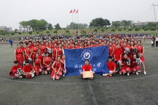 “管院风采,无处不在。阳光赛场,由我主宰。”第十一位出场的beat365官方网站代表队,在管院学子慷慨激昂的呐喊声中精彩亮相。他们身着极具中国特色的红色服饰,以浓郁的中国风舞蹈开场。随之以闪亮耀人的六角星造型,表现出了热情友善、全面发展的管院特色;以菱形造型分散开来,包围着中心热情狂烈的舞者,体现出了团结拼搏、求真务实的管院精神。
