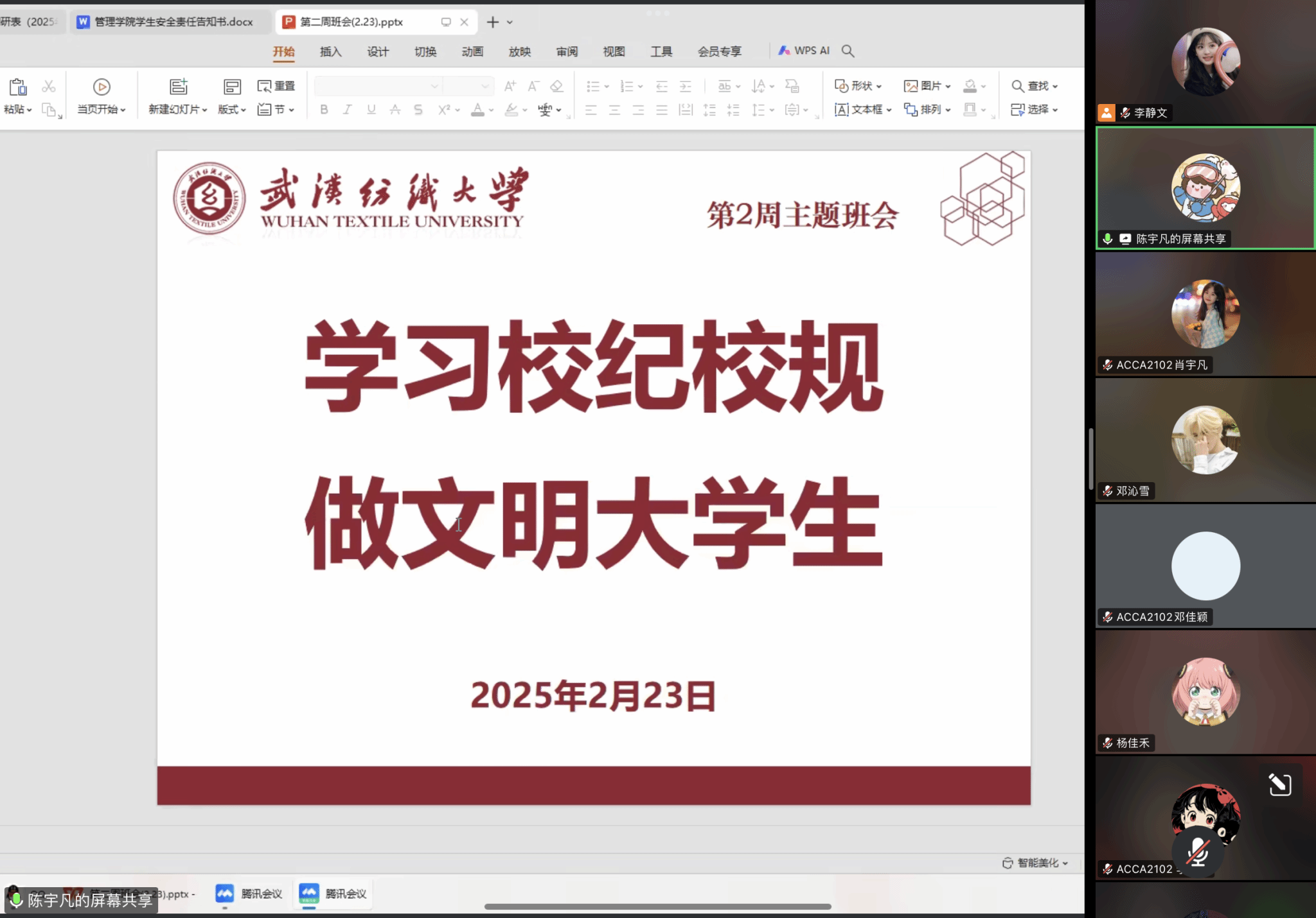 2021级各班主任召开线上晚点名班会。正值考研成绩公布之际,班主任手把手教学生如何查询考研成绩、如何进行复试准备及调剂,并对2025届毕业生的就业、升学情况进行了客观分析,提醒同学们做好多手准备,及时调整心态。同时班主任还强调了学分自查和补修重修等事宜。