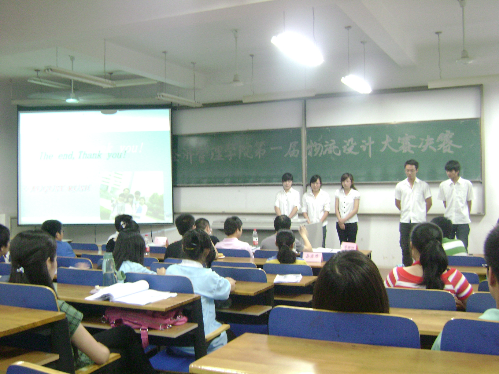 比赛经过层层选拔,共有四支队伍进入决赛进行PPT方案展示,同时接受评委提问。比赛现场气氛活跃,充满思辨和睿智。经过激烈的角逐,人资081班李大龙同学带领的团队以“顺丰速运配送系统设计方案”荣获了比赛的一等奖。