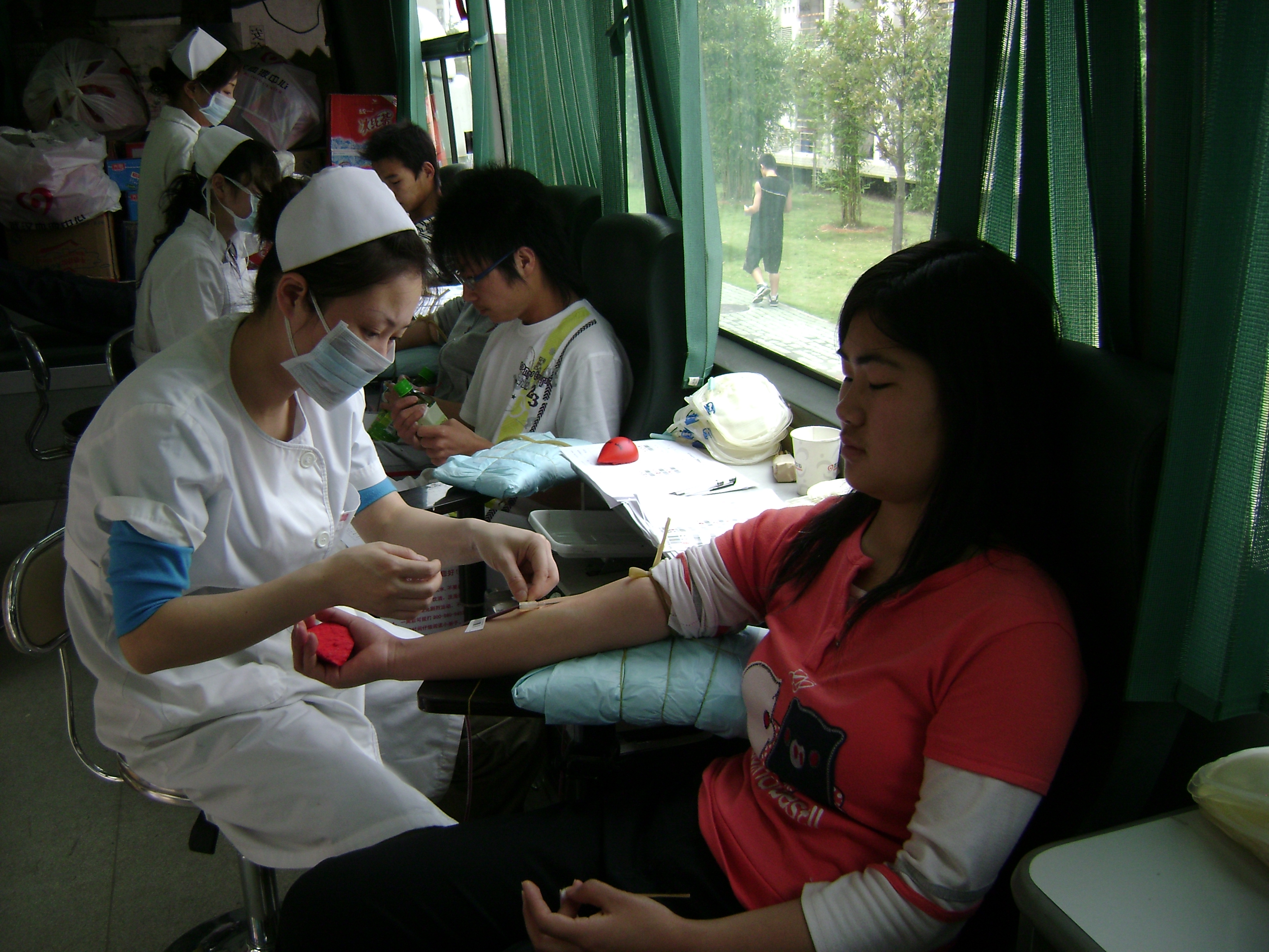 此次献血活动,让我校不少学生度过了一个特殊的青年节。这一份份爱心也响应了挂在献血车上的标语:让血液把我们的心连在一起;同在蓝天下,共享生命的感动。