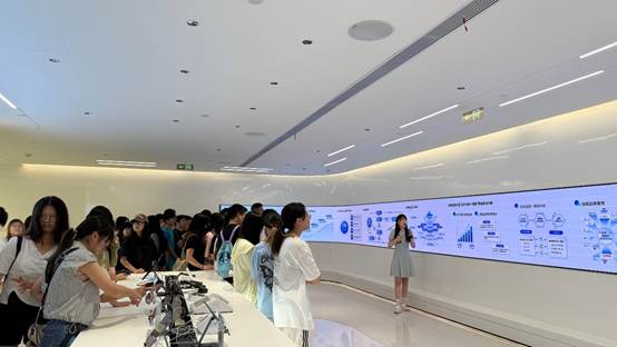 实习过程中,学生们首先参观了公司的大数据显示屏、产品展示区以及公司文化墙等。随后,利楚商务副总裁唐小忠向学生们介绍了公司的行业地位、市场表现以及未来的发展前景,并分享了公司所获得的荣誉和客户案例,让学生们感受到了企业文化的深厚底蕴以及在业界的影响力。
