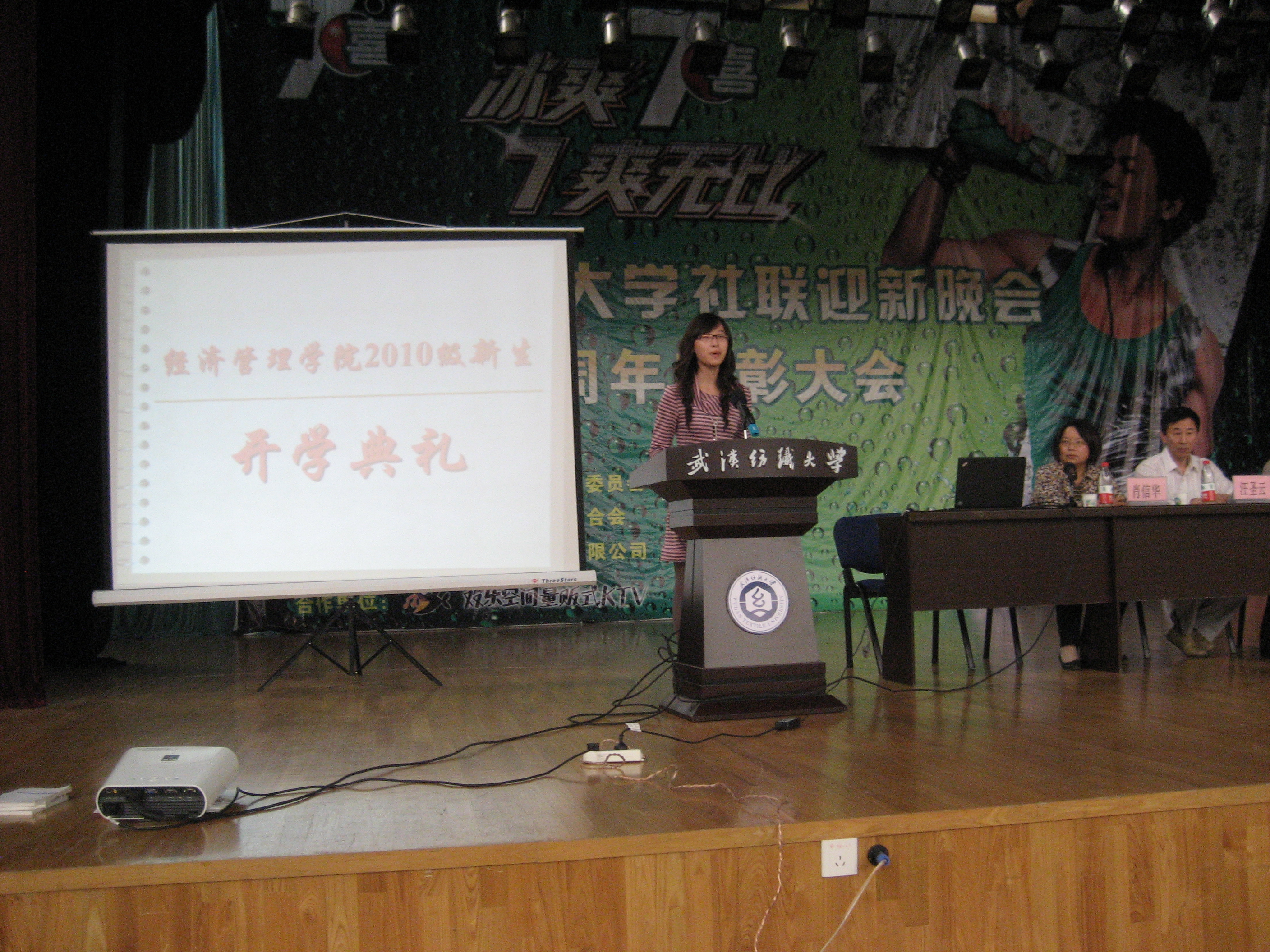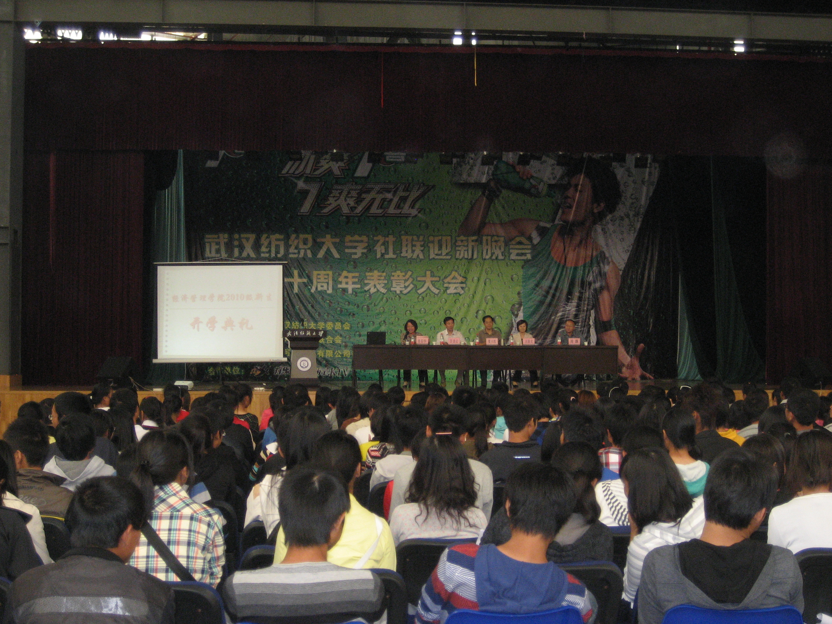 9月24日下午2:00,经济beat365官方网站2010级新生开学典礼暨青春领航系列讲座第一讲在阳光校区大学生活动中心演播厅隆重举行。学院院长夏火松、分党委书记汪圣云、分党委副书记肖信华、副院长王珍义和教师代表周灏等出席了典礼。全体辅导员、党员学长和新生参加了典礼。