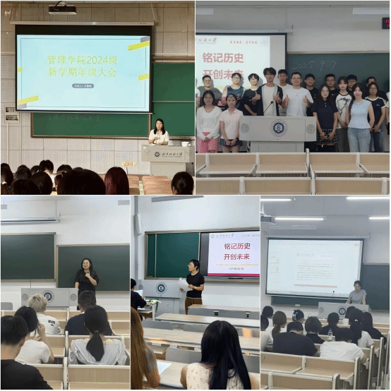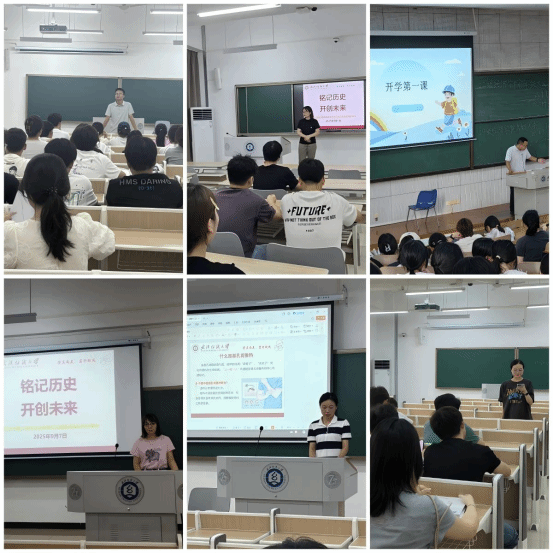 2025年9月7日,beat365官方网站各班级在班主任与辅导员的主持下,组织开展了以“铭记历史开创未来”为主题的新学期第一次班会,围绕爱国主义教育、抗战精神传承、新学期规划以及校园安全教育等内容展开,引导学生以饱满的精神状态迎接新学期。