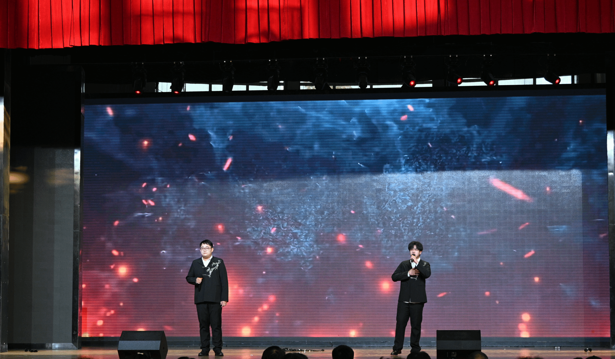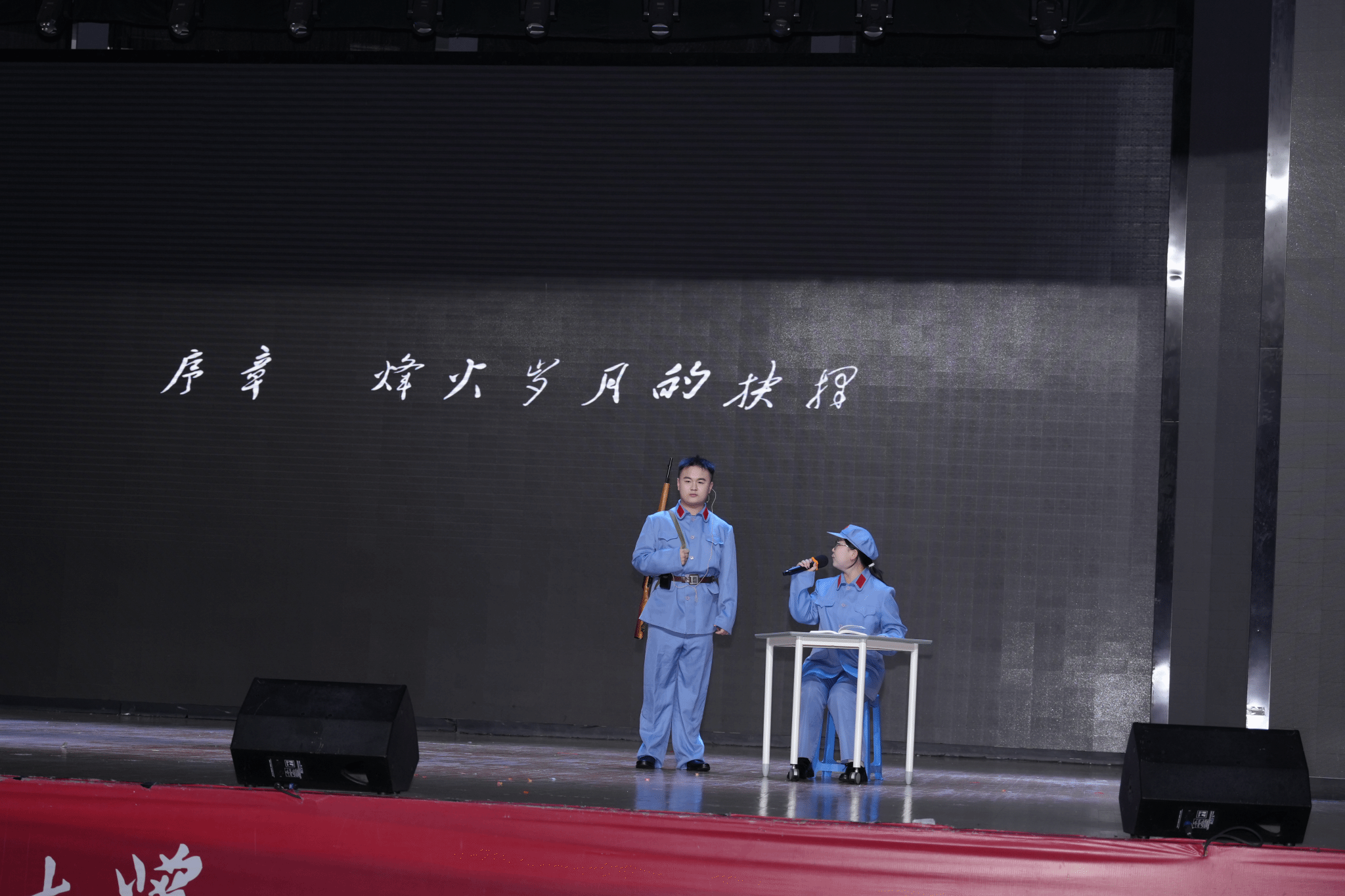 樊子烨、刘懿昕两位同学带来《永远的张富清》音乐党课,两人以饱含深情的表演,讲述了“共和国勋章”获得者张富清的英雄事迹,深藏功名六十载,一生奉献为人民,让现场师生深受触动,不少人眼中泛起泪光。张富清在青年时期,面对山河破碎,毅然投身解放战争,在枪林弹雨中冲锋陷阵,立下赫赫战功。