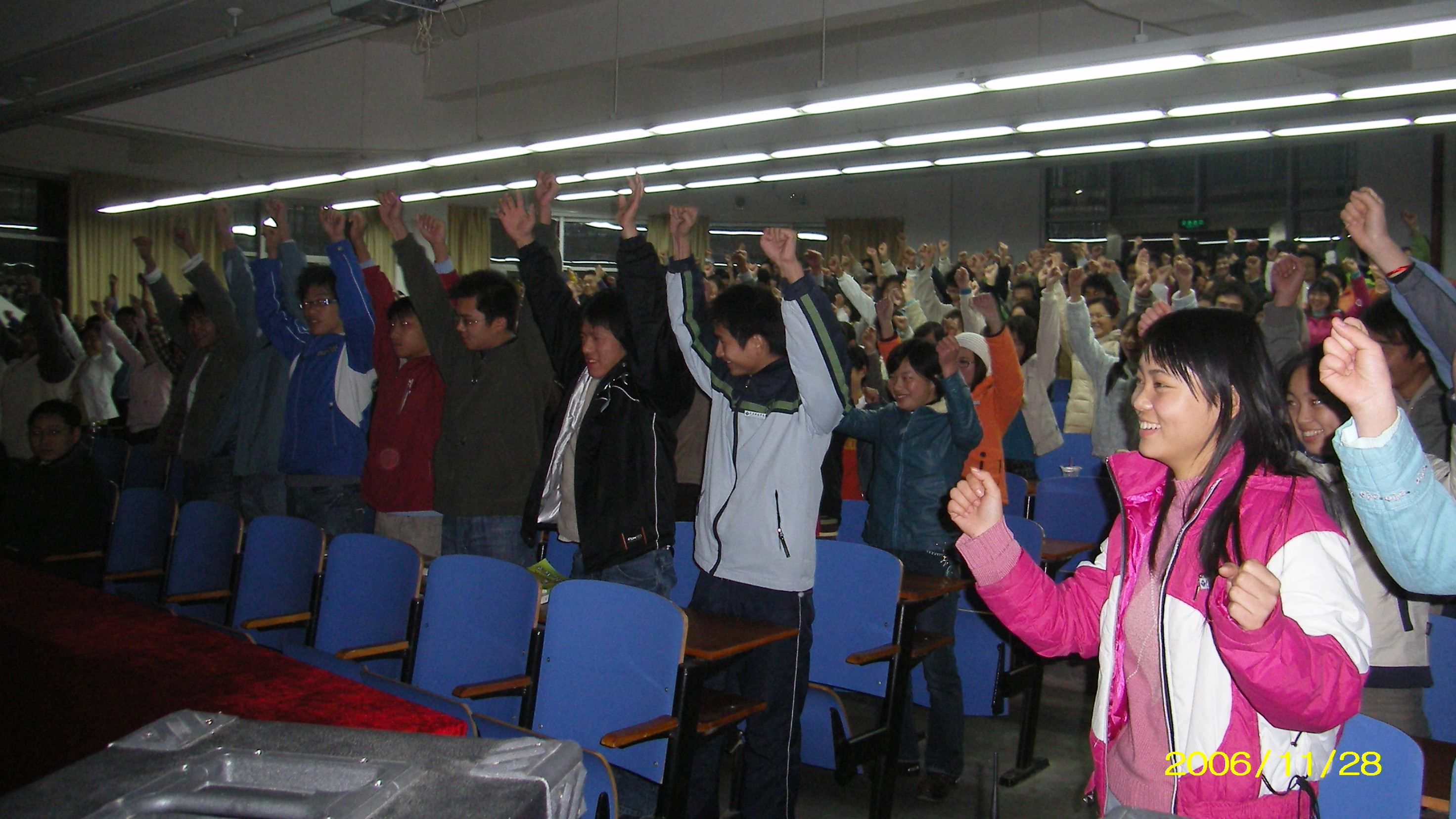 谢振乾老师是美国人力资源管理协会会员、亚太人力资源研究协会理事、武汉大学工商管理硕士(MBA)、资深管理咨询顾问。作为一个成功的HR,他以自己的丰富的经验为在场的同学上了一堂生动形象却又意义非凡的职场规划课。开场时,谢老师用游戏的方式开始了他的讲座,当大家还不明所以时,一次关于“管理”的课悄悄的进行着……