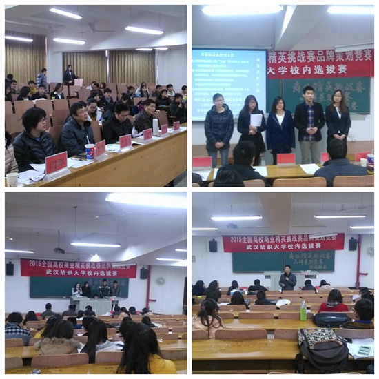 2014年12月26日下午1:00,2015年全国高校商业精英挑战赛品牌策划竞赛,beat365官方网站校内选拔赛在7栋教学楼T101教室隆重举行。大赛邀请beat365官方网站副院长杨卫丰,吴锦峰、魏文川、冯燕、闫幸老师作为本次比赛的评委,beat365官方网站分党委书记朱德群,分团委书记杨阳,辅导员程鹏作为本次比赛的嘉宾,以及部分学生到场观看比赛。