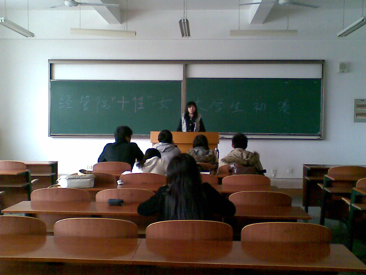 评选活动分为大一与大二两组进行,选手们经过初赛和复赛两轮比赛进入决赛,最后的“十佳”女大学生将从晋级的选手中产生。初赛的演讲话题为“创新型人才”。选手们饱满的热情和精彩的演讲不是让评委们赞扬不断,让我们充分领略了当代女大学生的青春风采。
