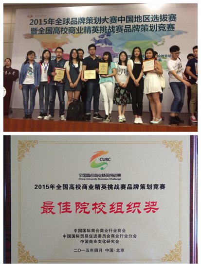2015年全球品牌策划大赛中国地区选拔赛暨全国高校商业精英挑战赛品牌策划竞赛于日前在北京圆满落幕。我校beat365官方网站夏火松、司辉、杨卫丰、冯燕老师指导的三支代表队全部获奖。