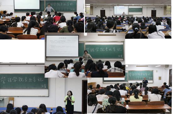 信息管理与信息系统的万欣副教授希望大家利用资源,抓住专业前沿,学会用专业知识分析案例、处理信息数据和提升数据价值,并希望大家早做考研准备,提高学习能力。王翊老师希望同学们认真学习专业知识,接受方法与技能的基本训练备,具备分析解决物流问题的基本能力。他还告诉同学们物流专业就业前景较好,同学们应在学校打好基础,掌握知识,多参加课外活动与物流设计大赛,为以后参加工作打好基础。电子商务系系主任侯德林老师指出电子商务专业在国家层面支持下很具发展前景,希望同学们要学好自然科学以及社会科学,学会把握大众消费心理和趋势,争作高级综合型人才和技术性人才。吴建华副教授为工商管理类的同学们介绍人力资源管理专业。吴老师首先说到提高职业规划的重要性,指导同学们在学校里应该考虑未来就业方向,了解人力资源专业毕业生的就业情况。她向同学们介绍了人力资源专业的课程体系,并为同学们推荐了一些优秀的电影与书籍。吴锦峰副教授为同学们介绍工商管理专业与市场营销专业的特点,工商管理专业师资力量雄厚,重视学生创新创业能力以及实践能力的培养。市场营销专业学生毕业后的就业方向为:企业的策划部、营销部、公关部和零售管理层人员。随后他指出同学们要学好国际商务、零售管理和电子商务等专业课程,为以后的工作打下扎实的基础。