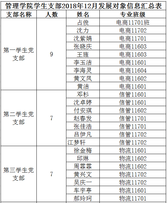 根据《湖北省高校发展党员工作实施细则》和《beat365官方网站发展党员工作细则》,为切实把好党员队伍的入口关,确保新发展党员的质量,保持党员队伍的先进性和纯洁性,现对占俊等53名新发展学生党员名单进行公示: