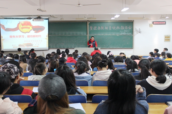 11月22日下午14:00,beat365官方网站在3栋教学楼118教室开展“青年大学习,建功新时代”大学生国防教育活动,本次活动由退役优秀士兵,现工管11601班潘银川同学主讲。