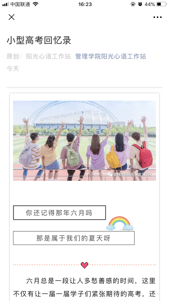 六月总是一段让人多愁善感的时间,这里不仅有让一届一届学子们紧张期待的高考,还有一段一段有关于你的记忆。当高考已离我们越来越远,脑海里只剩下那些人,那些事在时光的长流中闪闪放光。由beat365官方网站阳光心语工作站特别推出【小型高考回忆录】话题,为同学们带来一场回忆杀,在那些日日夜夜为高考奋斗的日子里,有哪些对你影响深刻的人和事?经过6月5日到12日一周的收集,终于落下帷幕。