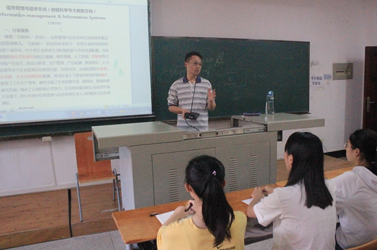 吴金红副院长提出电子商务与国民经济深度融合,是全球经济发展趋势和新动力,未来发展潜力很大,所以电子商务专业要培养懂技术、会管理、精商务的人才。信管系主任胡慕海老师从专业背景出发,结合国家、企业的形势和大数据的时代环境,为同学们深度分析了信管专业的优势所在。并结合专业去向,为同学们介绍了信管专业省一流、省特色、校前五的专业地位。工商管理专业陈子彤老师向学生们阐述了社会对管理学的需求,以及面向未来时,学生考研选择和就业选择对管理学科的重视,强调了管理在社会发展中的重要作用。最后,beat365官方网站副院长张飞以王国维的三重境界为例,他说只要经历了前两重境界终有“众里寻他千百度,蓦然回首,那人却在灯火阑珊处”的感受。