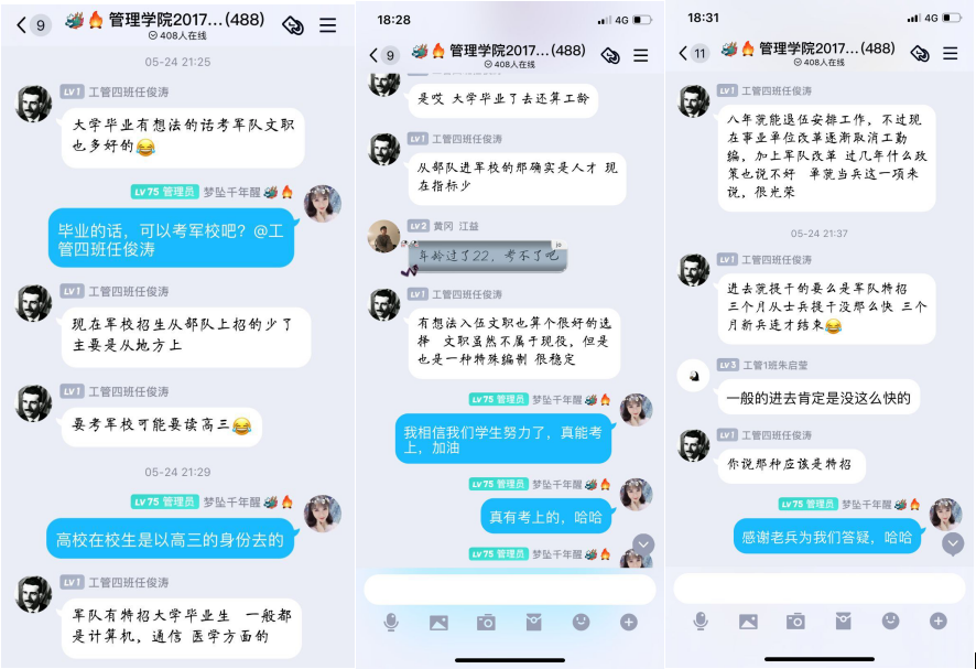 班会上,各年级辅导员通过班级QQ群向同学们传达了学校关于征兵工作的相关文件要求,详细讲解2020年湖北省征兵的具体内容,辅以征兵材料、PPT宣讲、视频讲解及图片展示等宣传方式强调大学生征兵不仅是党中央、国务院、中央军委做出的重大战略决策,也是新形势下加快国防和军队现代化建设,实现中国梦、强军梦的一项重要举措,更是高校开展国防教育、支持国防建设的职责与义务。