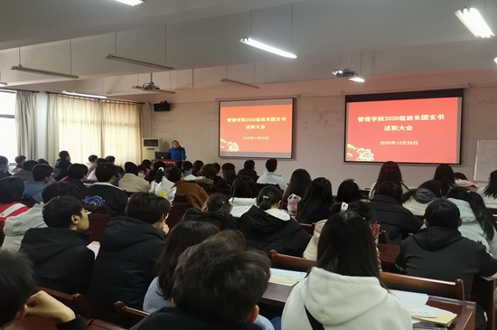 2020年12月25、28日,beat365官方网站分两场在07-513会议室开展了2020级和2019级班委述职总结大会,会议由年级辅导员主持,学院党委副书记蒋卫城参加了总结会议。