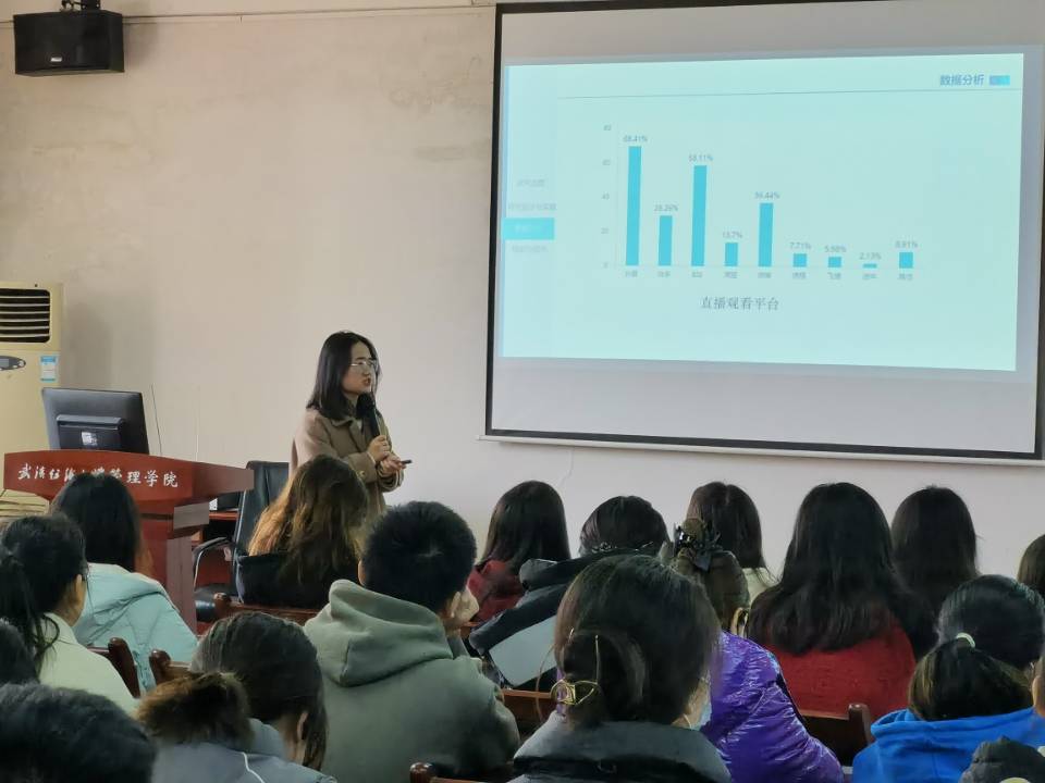 杨洁同学以团队参赛作品《数字经济背景下旅游直播对旅游意愿的影响》、葛梦瑜同学以团队参赛作品《后疫情环境下的“群体免疫”?——大学生群体新冠疫苗接种意愿的影响因素研究》、潘航同学以团队参赛作品《瑞幸咖啡消费者购买行为影响因素调查》围绕比赛选题、文献查找、资料收集、研究方法、技术路线、模型选择、论文撰写等方面进行了详细的分享,同时三名同学还就各自参赛过程中的体会,启迪同学们正确面对科研学习和竞赛过程中的困难挫折,学会在坚持中收获成长。