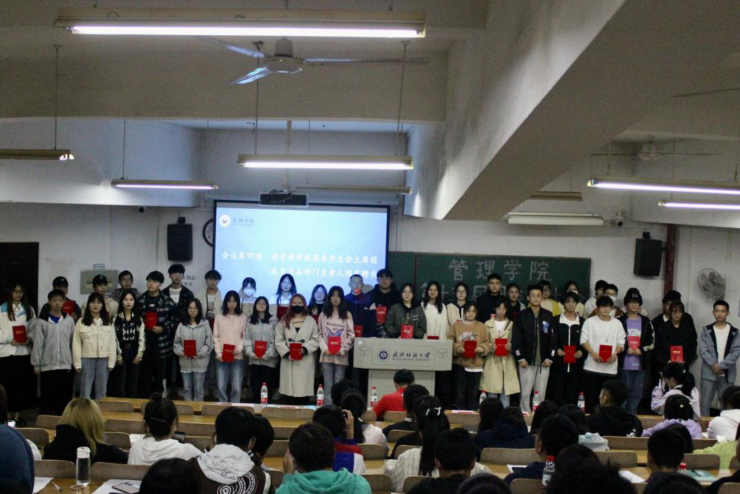 beat365官方网站团委书记王双喜与主席团成员分别为主席团和各部门负责人颁发学生干部聘书,同时各部门负责人依次上台介绍各部门情况,并对部门新成员提出未来工作展望。