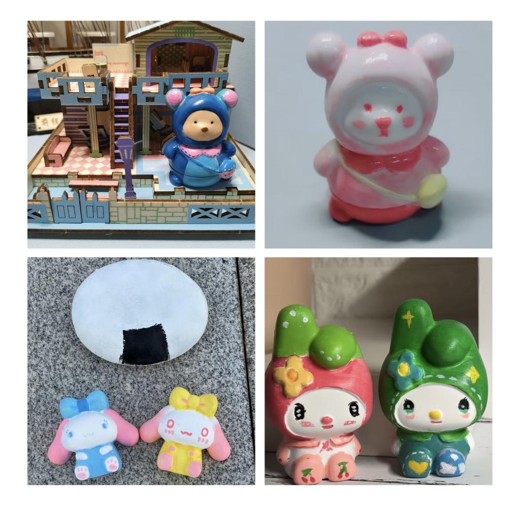 活动分为填写心情卡、涂石膏娃娃、涂石头画和拼小积木四个活动。活动现场,同学们在自己喜爱的素白石膏上进行创作,用独特的创造力为瓷白色的娃娃赋予鲜艳的色彩,创造了一个个缤纷且独特的石膏娃娃。活动现场大家相互交流,欢笑、赞美声此起彼伏,营造了轻松和谐的气氛。