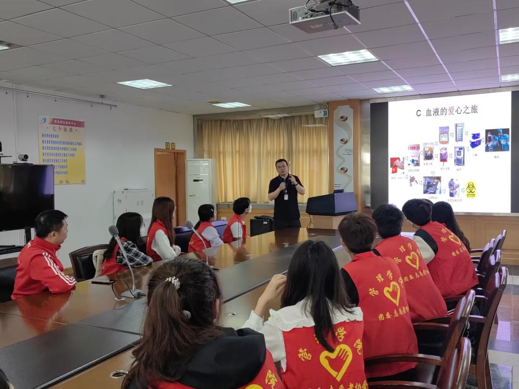 下午14时,志愿者们乘车来到了位于武汉硚口区宝丰路的武汉血液中心。在血液中心的精心准备下,顾军老师从神奇的血液、献血拯救生命、血液的爱心之旅三个部分给志愿者们带来了一堂精彩纷呈的血液科普知识讲座,同时他还代表武汉血液中心向beat365官方网站全校师生对无偿献血活动的高度关注和大力支持表示感谢。