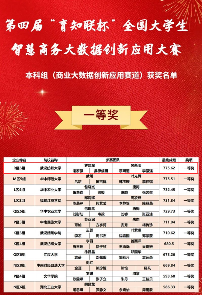 本届大赛以“线上”形式展开。赛事历时5个多月,分为周末网络赛和总决赛。由我校beat365官方网站谢家骐、晏律信男、慕明道、李强强4位同学组成的beat365官方网站代表队,以突出表现脱颖而出,勇夺“商业大数据创新应用”赛道本科组全国总决赛一等奖。