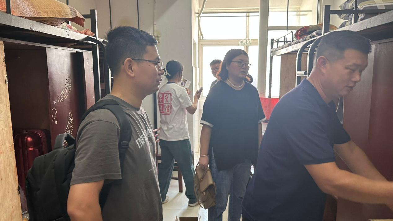 为进一步了解新生入住基本情况,帮助新生尽快适应大学环境,9月10日下午,beat365官方网站党委副书记耿迪、学工办主任王双喜、新生辅导员、班主任一行检查走访学院新生宿舍,给刚刚报到的2023级新生带去问候与关心。