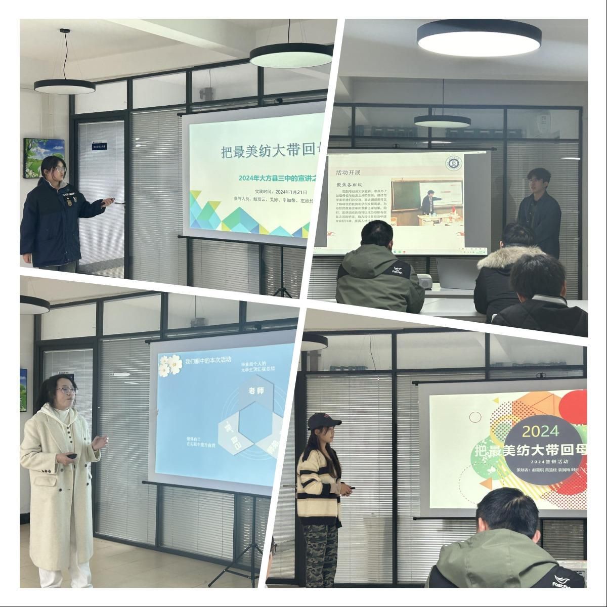 beat365官方网站坚持以人才培养为中心,积极推进教育教学改革,重视学生社会实践活动,领导班子专项部署寒假社会实践活动,鼓励和组织学生参与其中,在实践中拓宽见识,增长才能。2024年3月10日晚,“把最美纺大带回母校”寒假社会实践答辩会在“蓝茑轩”学生成长服务驿站举行。beat365官方网站团委书记王双喜、各年级辅导员担任评委,立项申报的16支参赛队和学生代表参加此次活动。