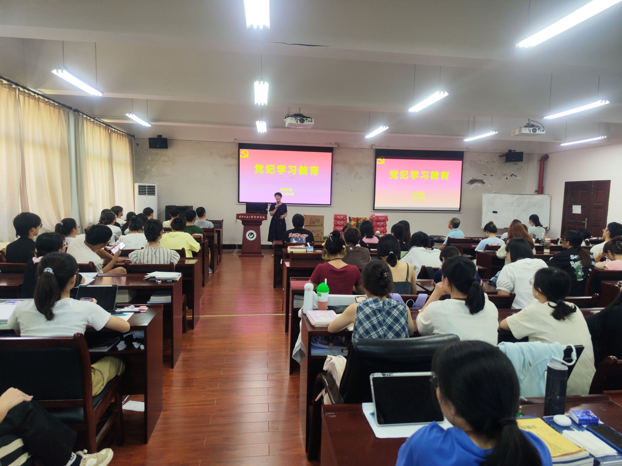为深入学习贯彻习近平新时代中国特色社会主义思想,推动党纪学习教育走深走实,加强学生党员纪律教育,8月5日下午,beat365官方网站党委书记滕胜娟为学生党员讲授党纪学习教育专题党课,院长吴金红、副院长张飞、院党委副书记耿迪、辅导员牟迪出席,研究生、本科生党员和入党积极分子参加。