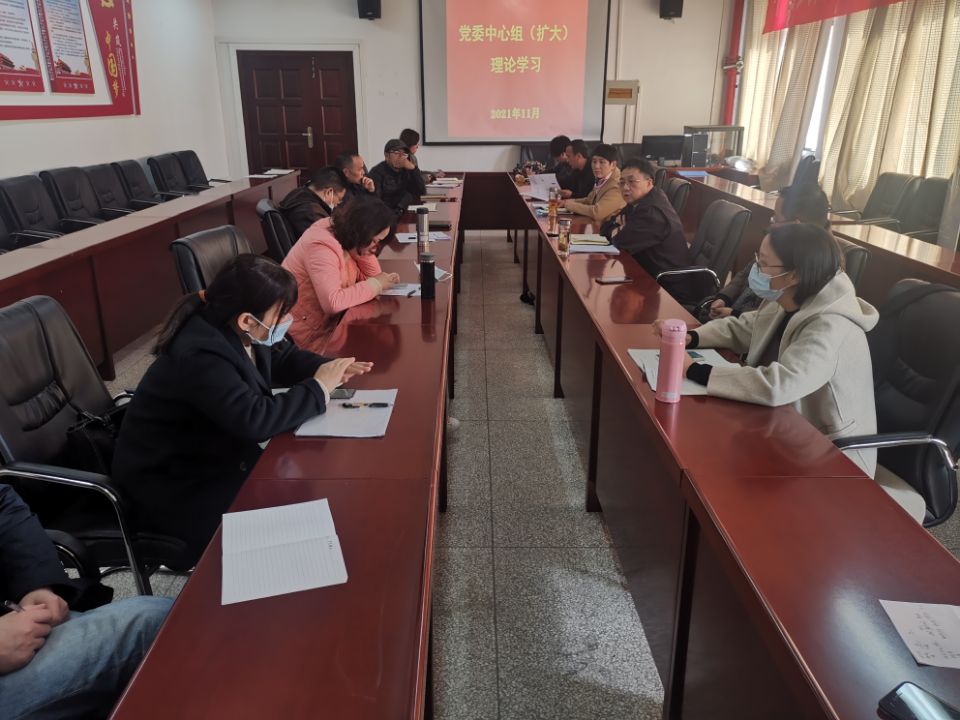 11月25日下午,beat365官方网站党委理论学习中心组(扩大)举行2021年第八次集体学习,专题研学党的十九届六中全会精神。院党委书记滕胜娟、院长王济平等领导班子成员以及各系(中心、实验室)主任、支部书记参加了学习。