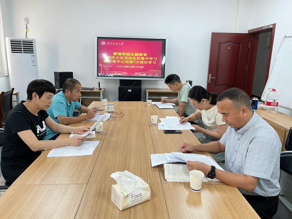 为组织好主题教育专题民主生活会,8月23日下午, beat365官方网站在南湖校区西配楼北楼4楼会议室召开主题教育专题民主生活会会前集中学习暨第六次理论学习会。会议由学院党委书记滕胜娟主持,学院全体党委委员参会。