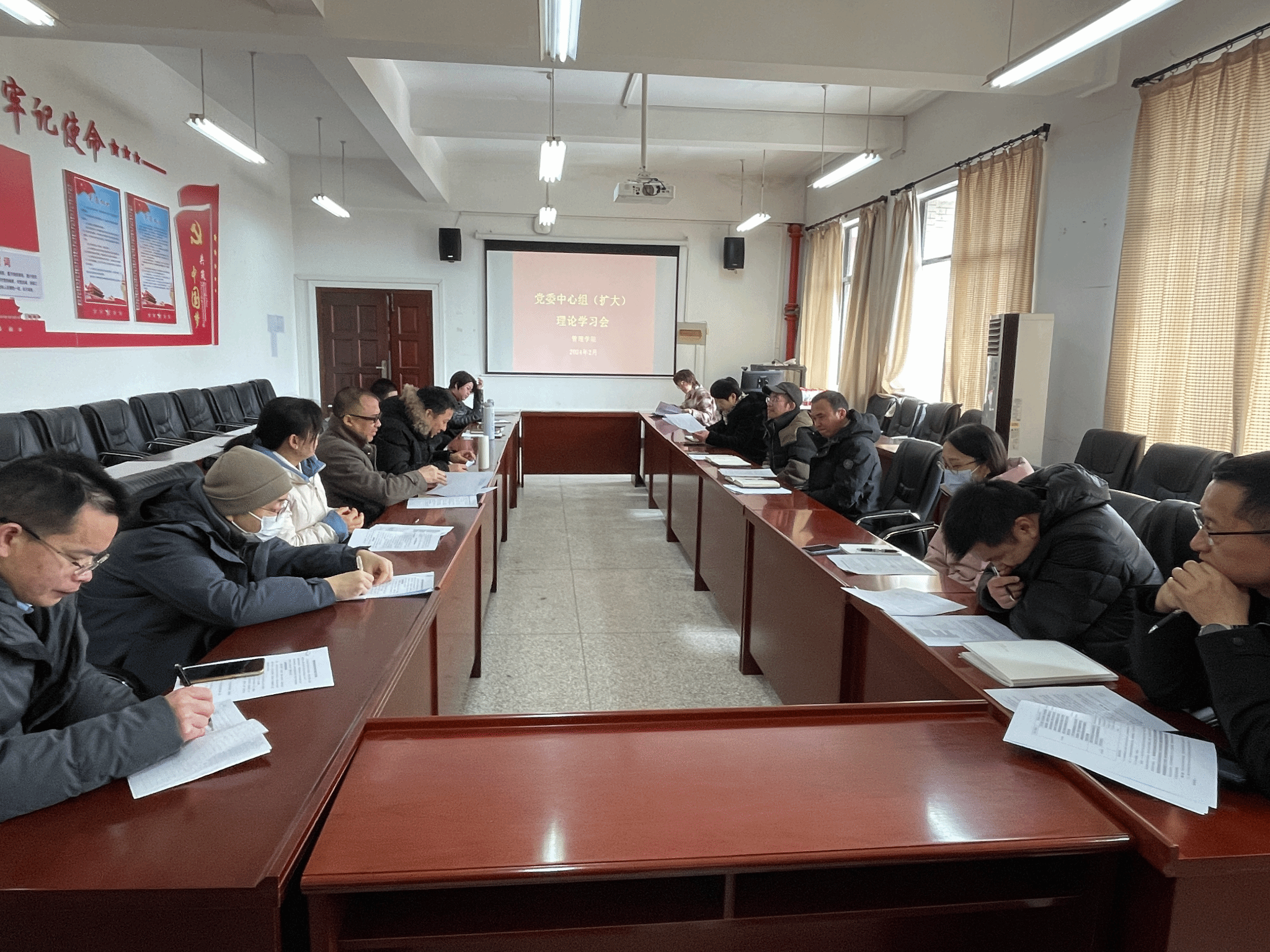 按照学校党委部署和学院党委安排,2月27日下午,beat365官方网站召开党委理论学习中心组2024年第1次学习会,会议由学院党委书记滕胜娟主持,学院全体党委委员、教师党支部书记参加。