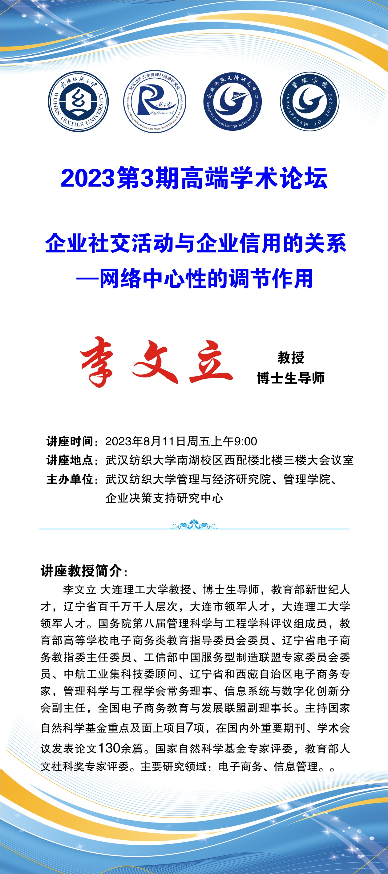 学术预告第437期beat365官方网站:企业社交活动与企业信用关系-网络中心性的调节作用