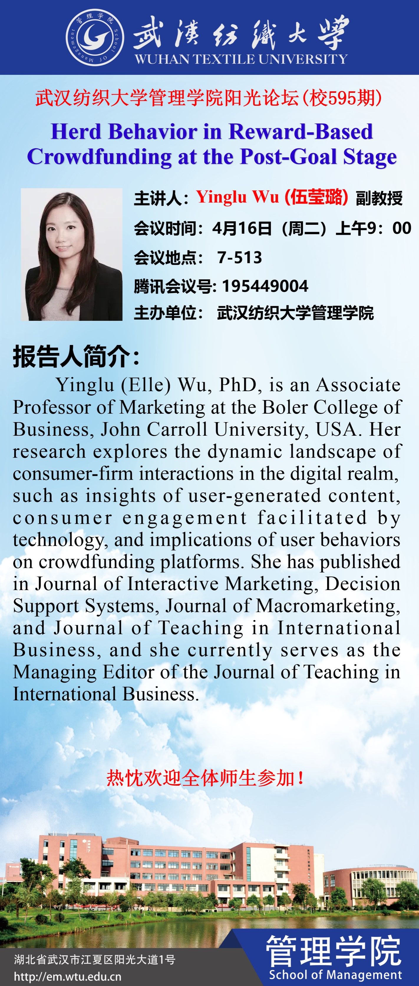 阳光论坛595期学术讲座预告:Herd Behavior in Reward-Based Crowdfunding at the Post-Goal Stage