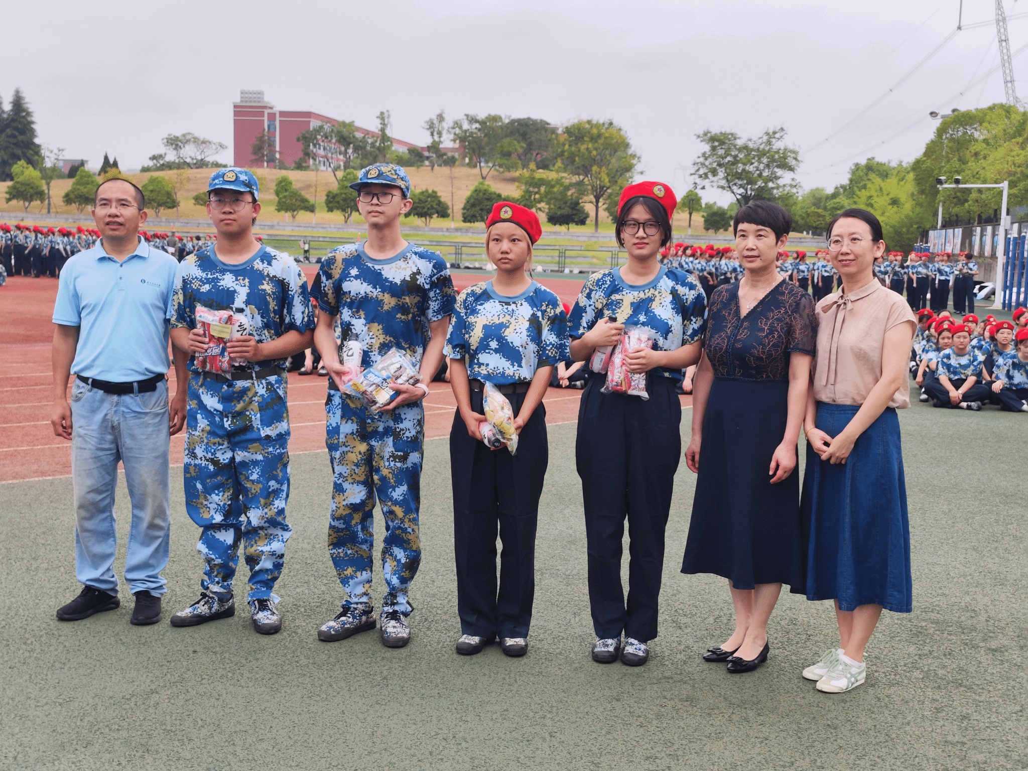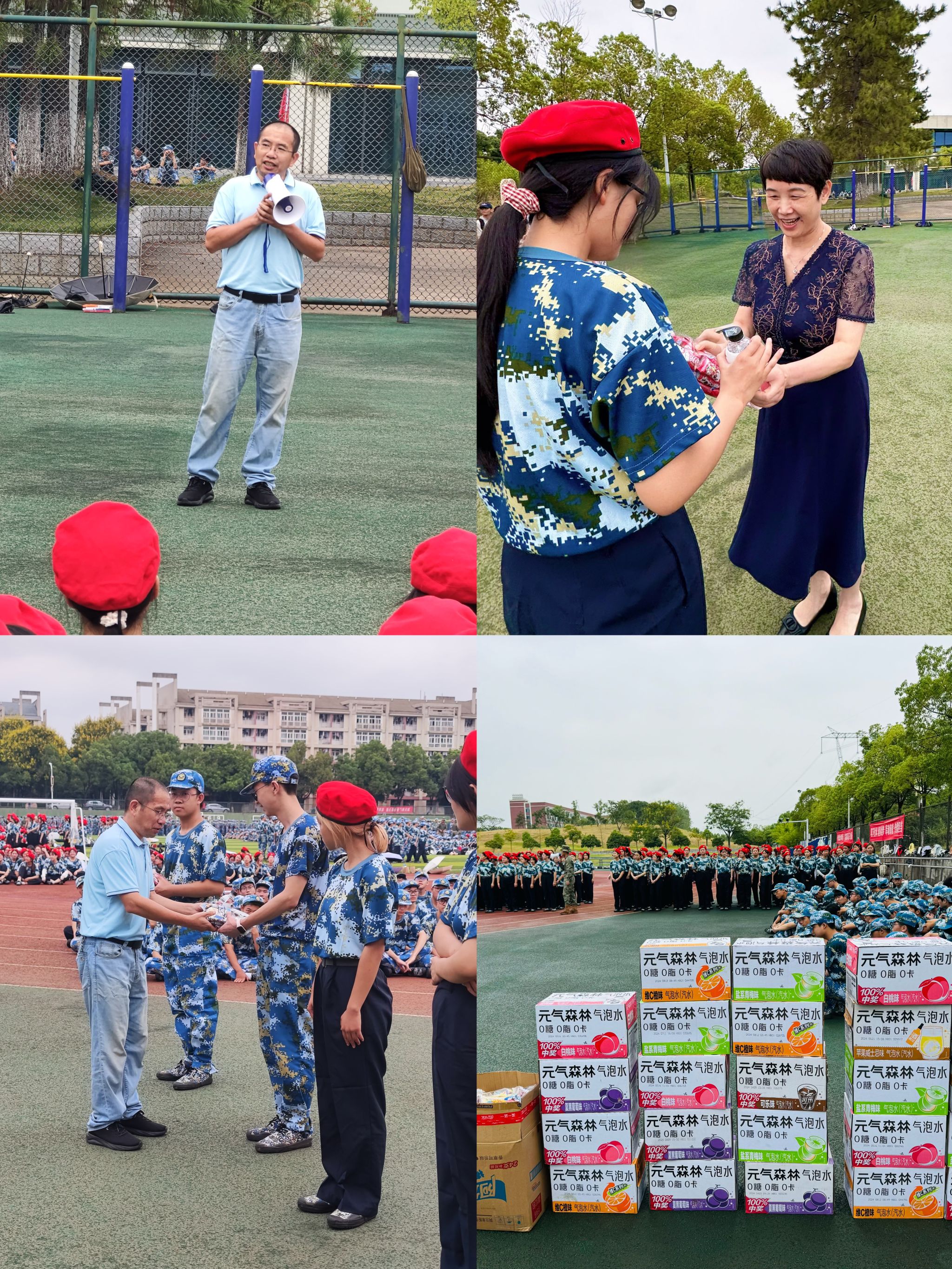 随后,学院领导向带训教官及参训学生发放清凉慰问,提醒同学们近来天气昼夜温差大,同学在军训过程中要注意安全,有任何的不适及时汇报,及时处理。