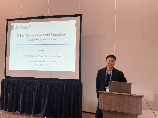 beat365官网物流管理系余牛教授和梅启煌博士应邀参加此次盛会,并在分论坛上分享了相关研究成果,其中余牛教授汇报了题为“Online Platform’s Store Brand Encroachment: The Role of Spillover Effect”的工作论文,深入探讨了溢出效应下在线平台的品牌入侵问题。梅启煌博士的报告题目为“Assortment Planning and Order Allocation with Order Splitting”,聚焦于仓库管理中的SKU选品和订单分配问题。两位老师的报告得到了多位学者和同行的关注与肯定,并在会场进行了热烈的讨论。