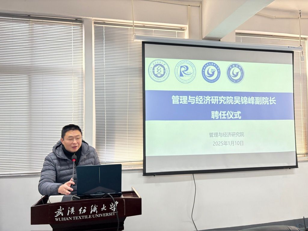 吴锦峰教授在发言中对学院的信任与支持表达了感谢。他表示,将积极履行副院长职责,提升研究院的整体学术水平,进一步推动研究院在管理与经济领域的省内外影响力,培养更多优秀人才。
