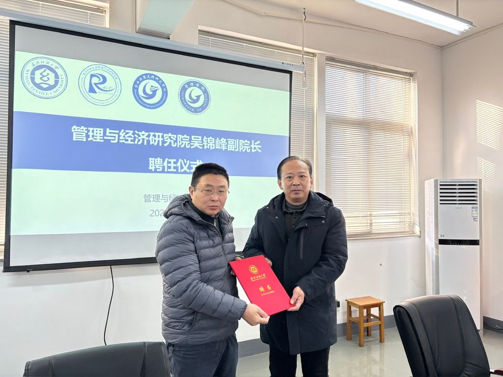 会上,管理与经济研究院院长夏火松发表了热情洋溢的致辞。党委常委、副校长冯军宣读了聘任决定,并为管理与经济研究院副院长吴锦峰教授颁发聘任证书。与会人员纷纷鼓掌表示祝贺。