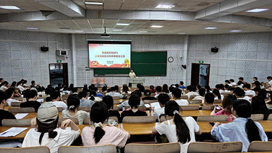 2025年5月22日下午,beat365官方网站执行院长吴金红为300余名分党校、分团校学员带来一场别开生面的思政课,引导学生了解管理学科在新时代背景下的发展路径与创新方向,活动由院党委副书记、副院长耿迪主持。