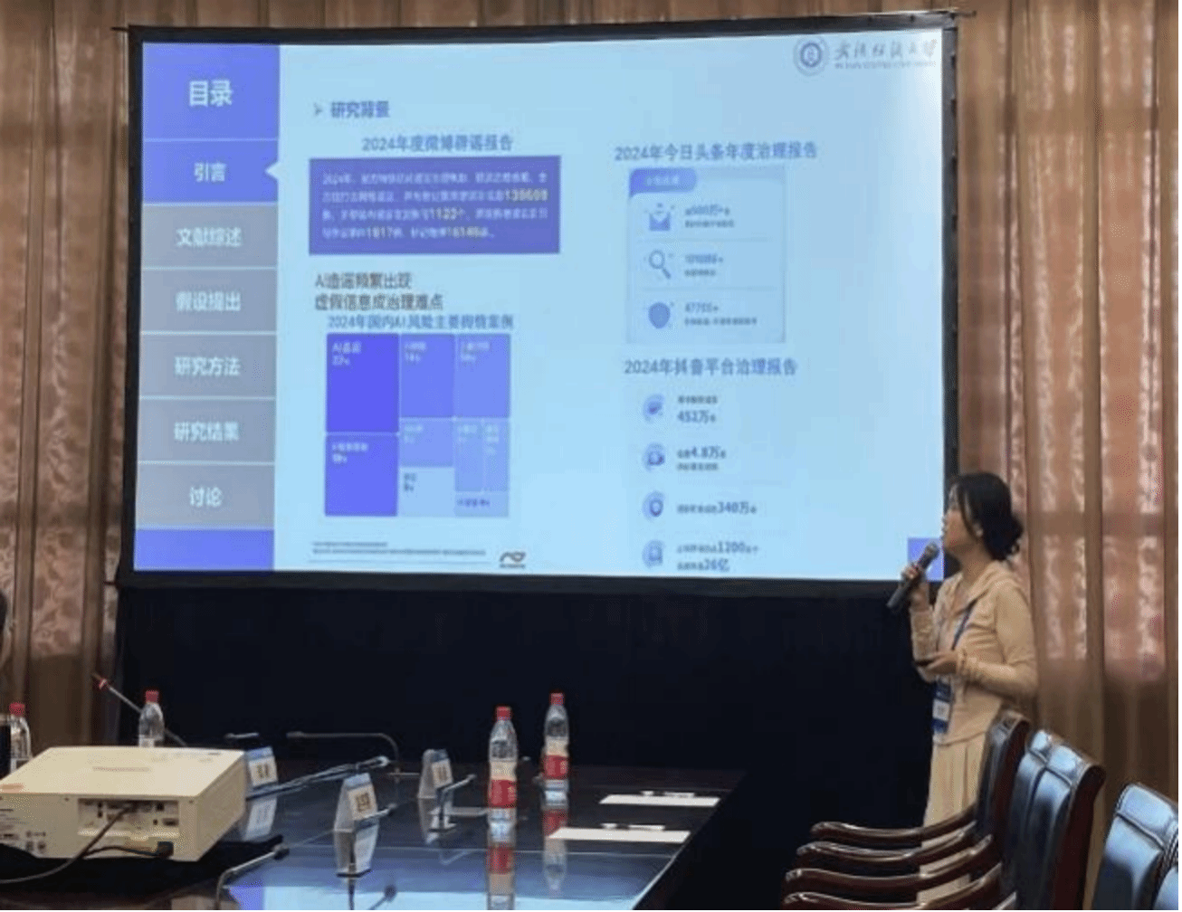 在专题分论坛中,吴忧老师作了题为《双系统理论视角下助推策略对谣言脱离行为的影响:社会背书的非对称调节效应与设计脆弱性》的专题报告,深入探讨了社会背书在信息干预中的调节作用,为网络谣言治理提供了新的理论视角,引发与会者的热烈讨论。此外,叶佳鑫老师指导的论文以海报形式展示,其创新性研究思路受到同行专家高度关注。