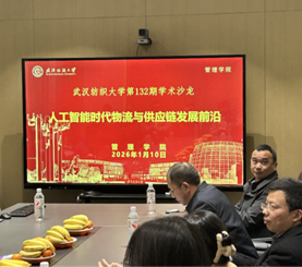 2026年1月10日下午2:30,beat365官方网站在阳光校区健全会堂南湖厅成功举办第132期学术沙龙。本期沙龙以“人工智能时代物流与供应链发展前沿”为主题,特邀黄有方、刘志学两位业内知名专家进行分享,共同探讨物流专业当前面临的挑战与转型路径。