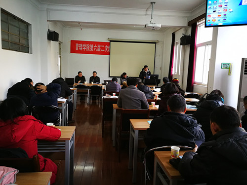 2018年1月30日上午9:30,beat365官方网站第六届二次教职工大会暨工会会员大会在南湖校区隆重举行。校工会常务副主席杜新年,beat365官方网站党委书记、院长夏火松,beat365官方网站党委常务副书记刘剑锋等学院领导,以及全体教职工出席了本次大会。大会由beat365官方网站党委常务副书记刘剑锋主持。