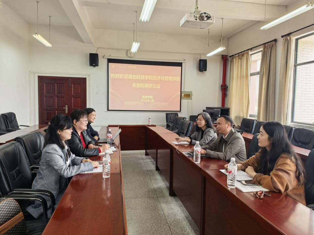 为深化校际合作,共享特色办学经验,共探管理类人才培养创新路径,2026 年 4 月 8 日,湖北科技学院经济与beat365官方网站教师团队莅临beat365官方网站,围绕 CMA 方向班建设、人才培养、产教融合等开展专题调研交流。beat365官网张飞副院长及 CMA 方向班教学管理团队参加座谈。