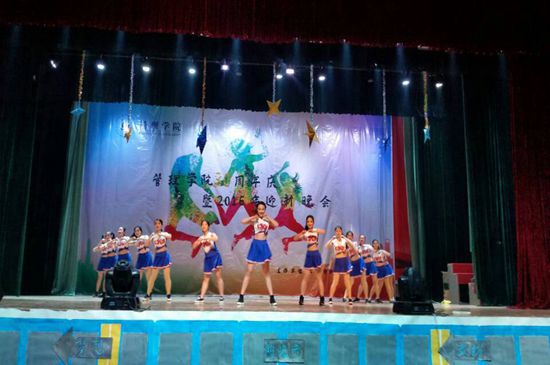 随着强劲的音乐响起,活力四射开场舞《篮球宝贝》开启了整场晚会的“梦之旅”。 学生自编、自导、自演的小品《一念天堂》、《四傻闹院庆》引起同学们捧腹大笑的同时也富含一定的哲理。创意节目《黑白视觉效应》花样百出,奇特的服饰别具匠心的表演赢得台下观众阵阵掌声。《傣族姑娘》展现了同学们的曼妙舞姿,《歌曲串烧》将青春的活力表现的淋漓尽致。大合唱《爱因为在心中》歌声中饱含青春的自信和梦想的光芒,也为本场晚会划上了圆满的句号。