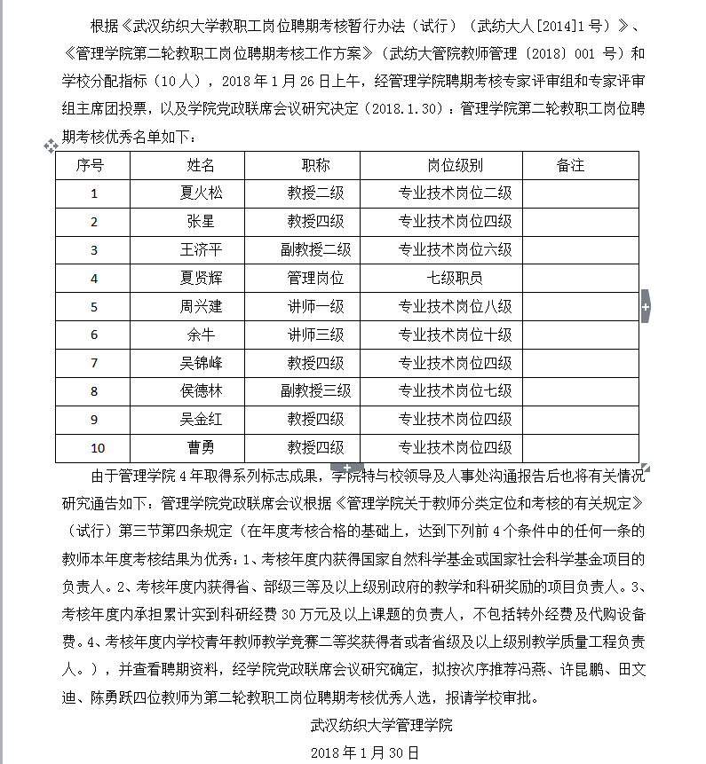 beat365官方网站第二轮教职工岗位聘期考核优秀拟报人选名单公示