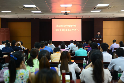 9月11日上午,beat365官方网站2015级工商管理硕士(MBA)开学典礼在阳光校区115隆重举行,MBA师生共同见证了这一光荣而激动的时刻。副校长潘慧明、研究生处处长同小军,beat365官方网站院长夏火松、分党委书记朱德群出席了开学典礼,典礼仪式由beat365官方网站副院长王济平主持。