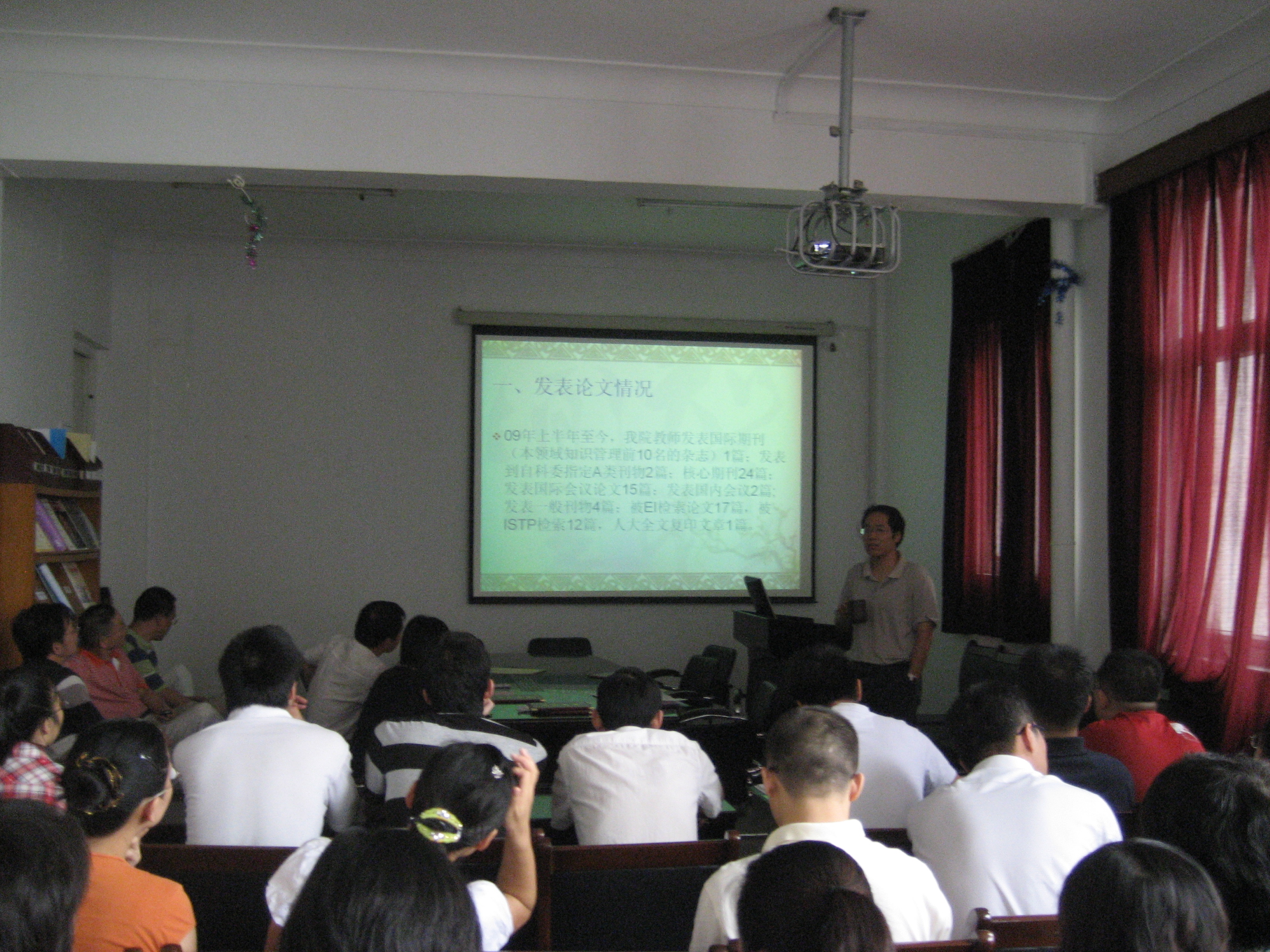 结合2009年度下半年科研情况,夏火松院长表示,通过考核、表彰等评价激励形式,切实提升学院科研整体水平,落实核心指标,打造标志成果;他从论文发表、专著和教材出版、项目经费与获奖等方面提出了建议和对策。他希望全体教师再接再厉、团结奋进、敢于争先。要积极争取学校重视和支持,加强信息沟通和学术团队建设,加大人才引进与培养力度,进一步优化完善教师的评价制度和激励制度,促进科研工作上新台阶。(谢超)